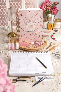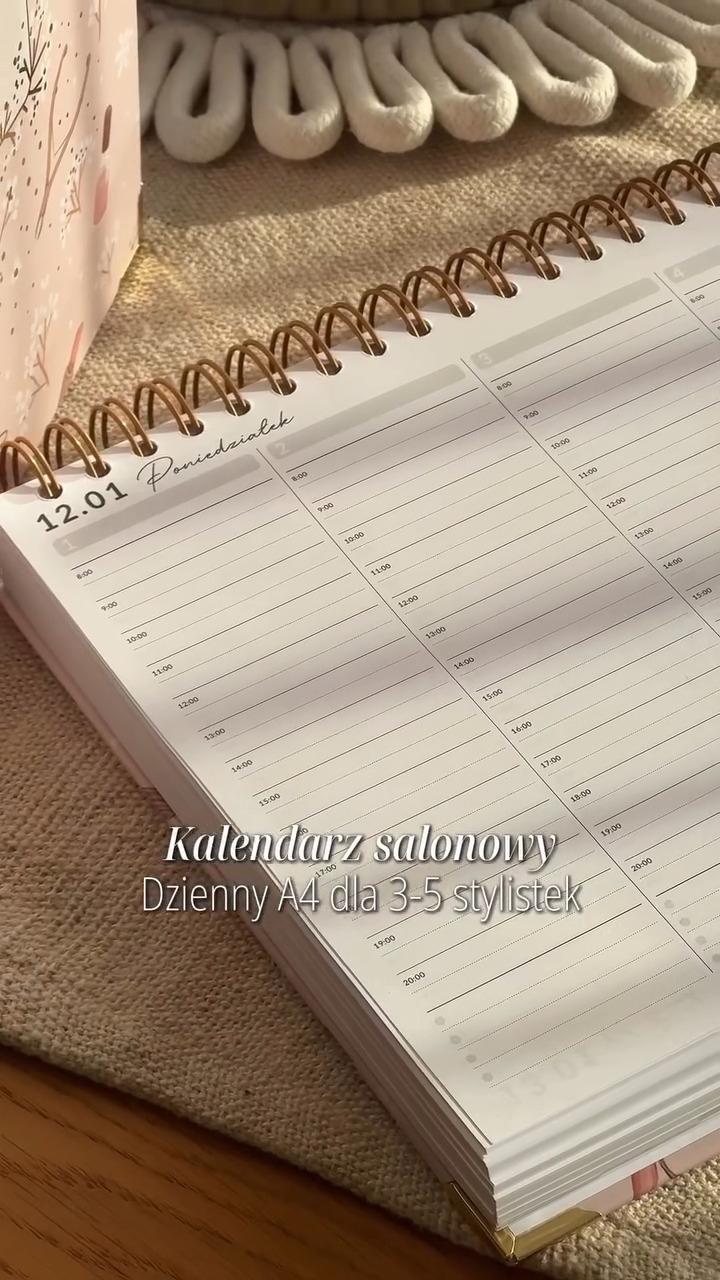 - Kalendarz jest w formacie A4, aby nie zabrakło Wam miejsca na zapisywanie klientek